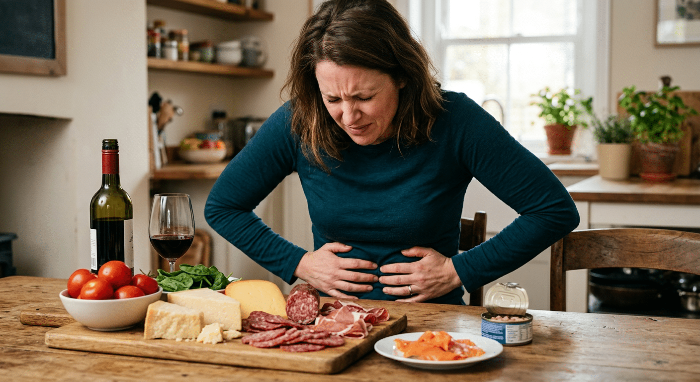 Trotzdem kommt der Verdacht häufig auf, beispielsweise bei Beschwerden nach dem Verzehr von Rotwein, gereiftem Käse, fermentierten Produkten oder bestimmten Mischmahlzeiten. Typisch ist, dass nicht nur der Bauch betroffen ist, sondern dass auch Symptome außerhalb des Darms dazukommen, etwa Kopfschmerzen, Flush, Hautreaktionen oder Herzklopfen. Solche Muster können zwar vorkommen, sie sind jedoch unspezifisch und beweisen für sich genommen noch nichts [13][14].